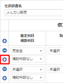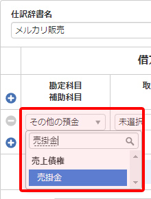 先ほど追加した「借方」の勘定項目ごとに「売上高」を設定していきます。